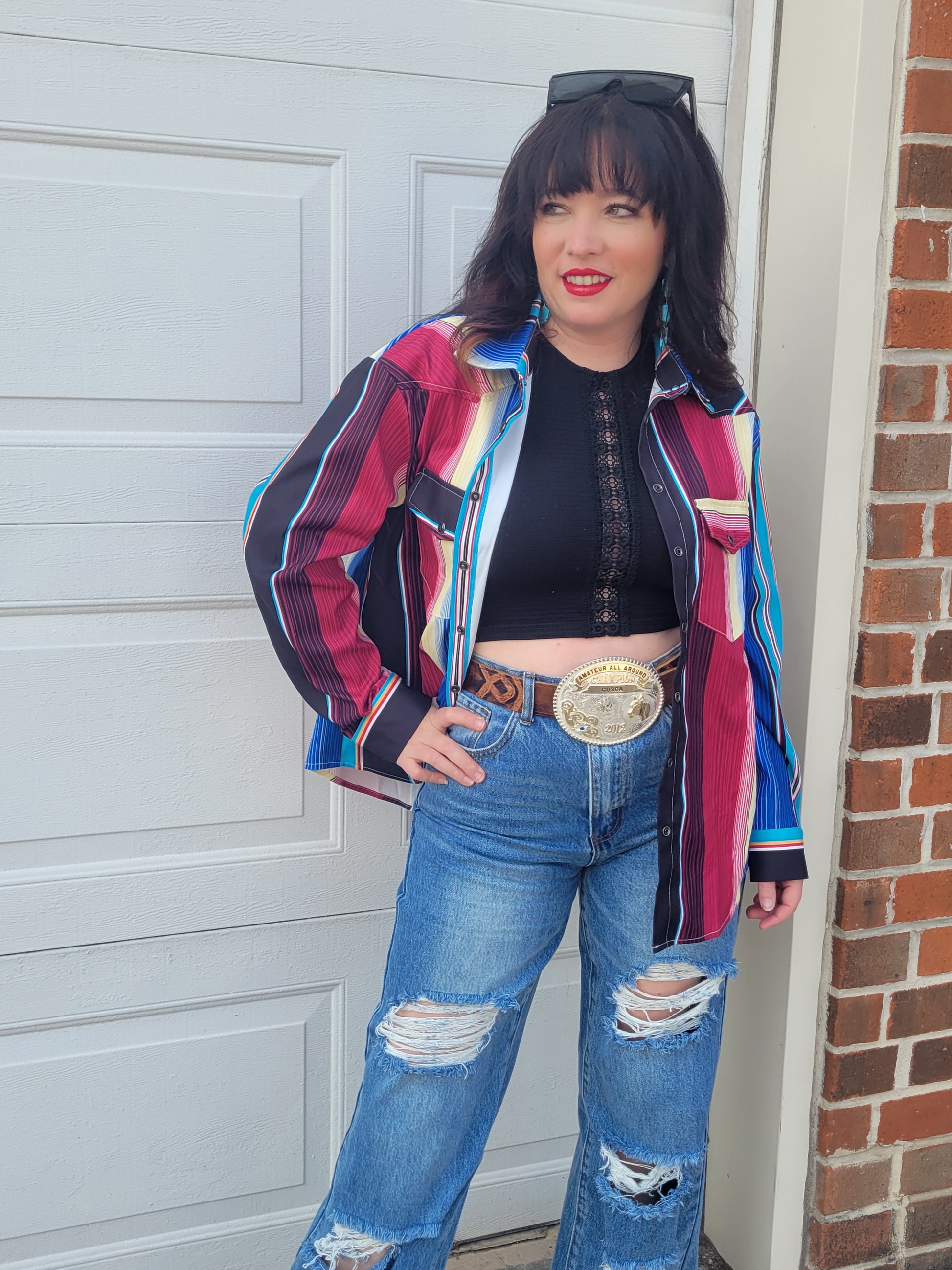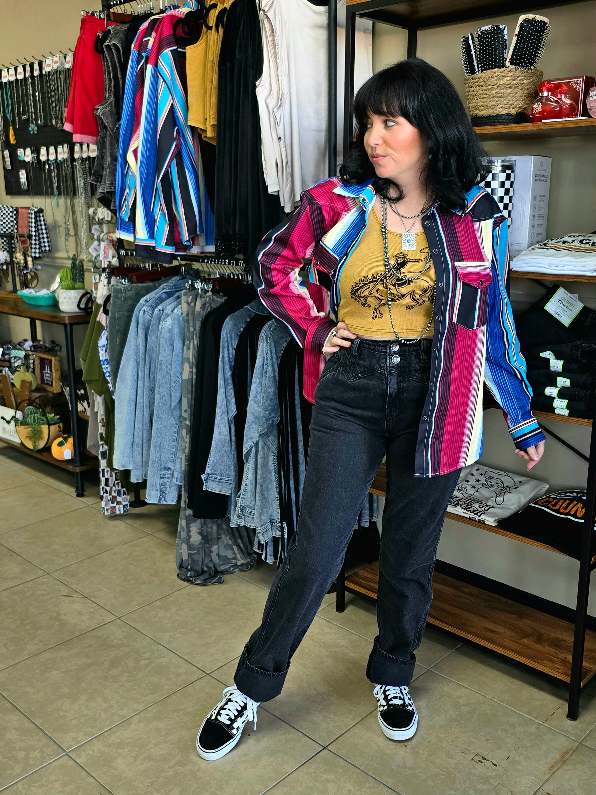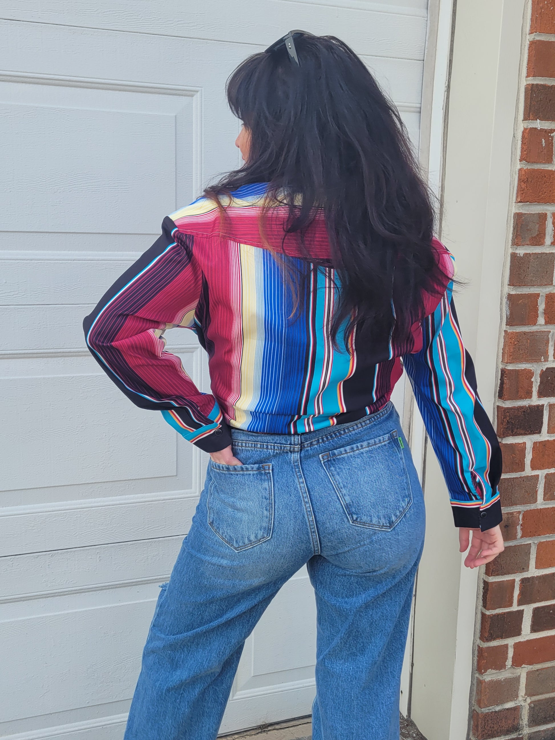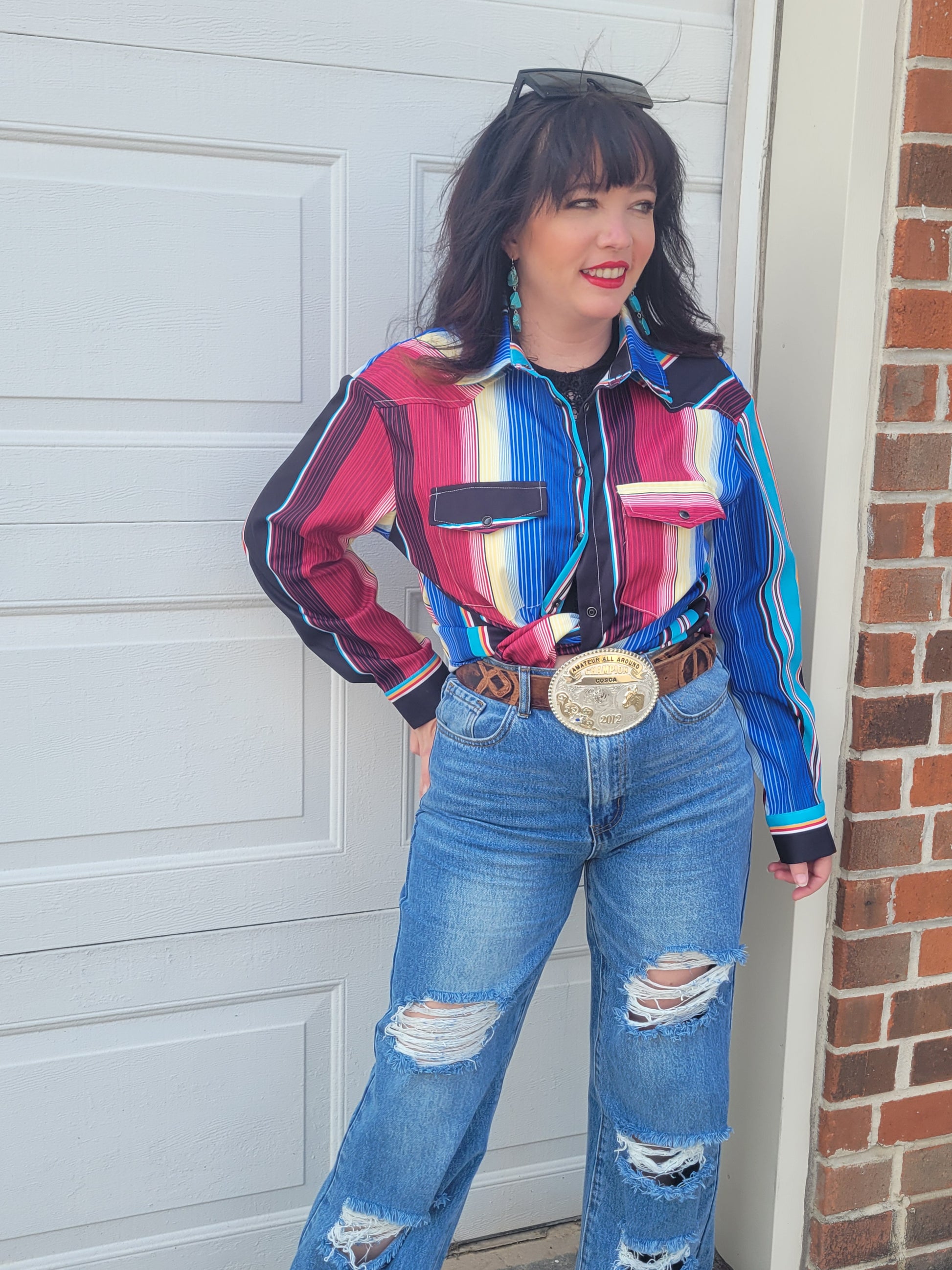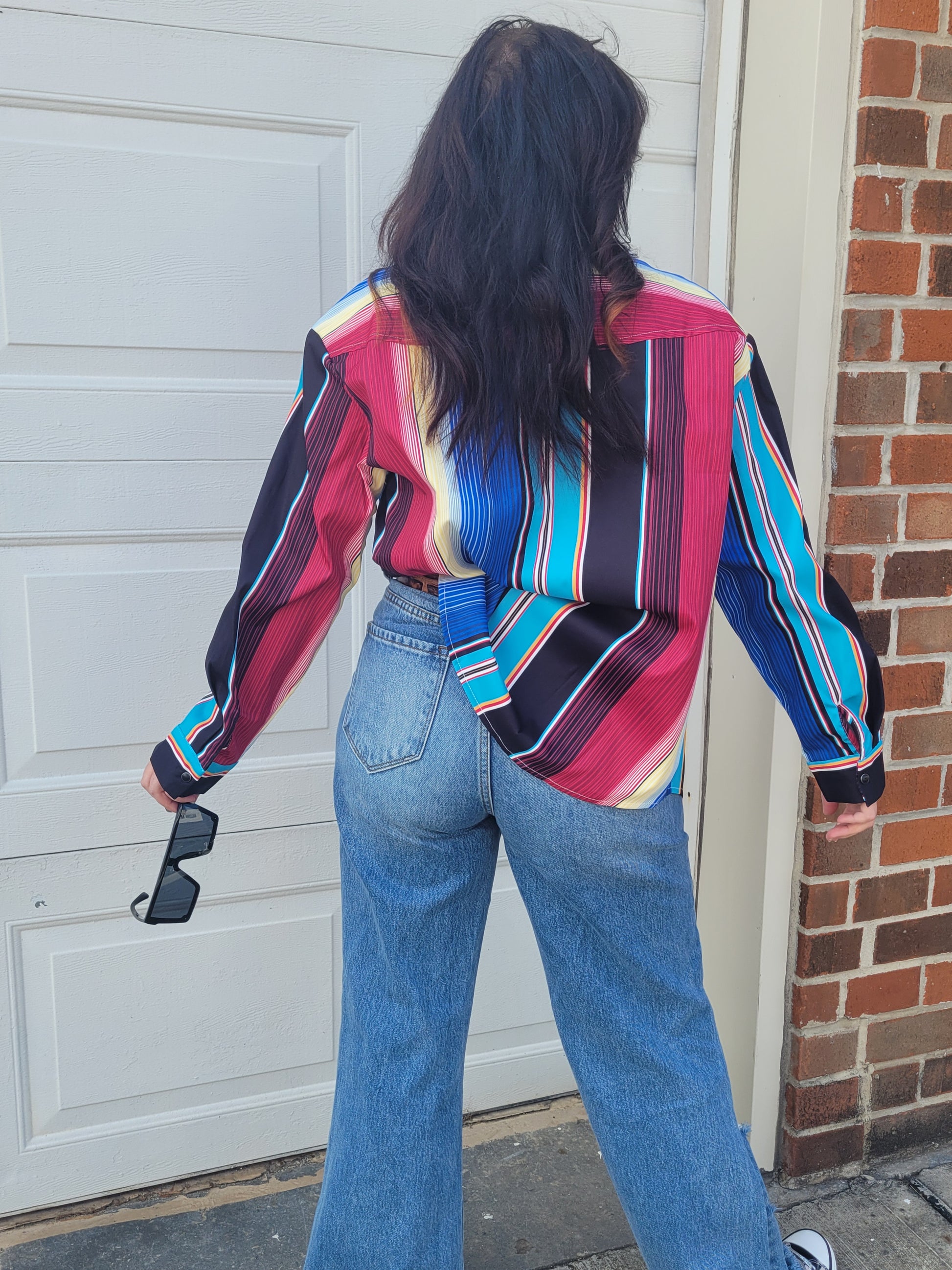 Printed long sleeve western button down shirt with front chest pockets.