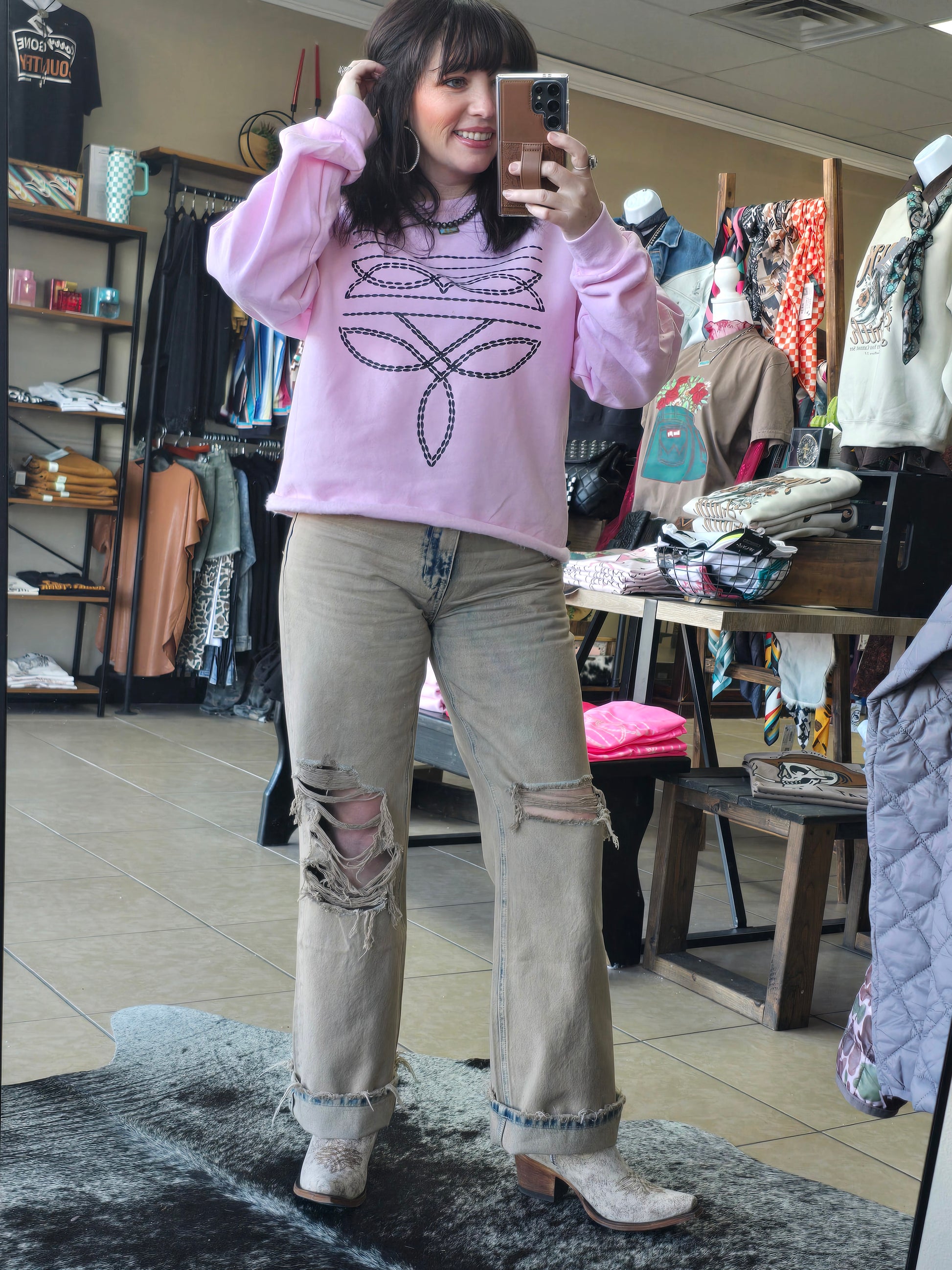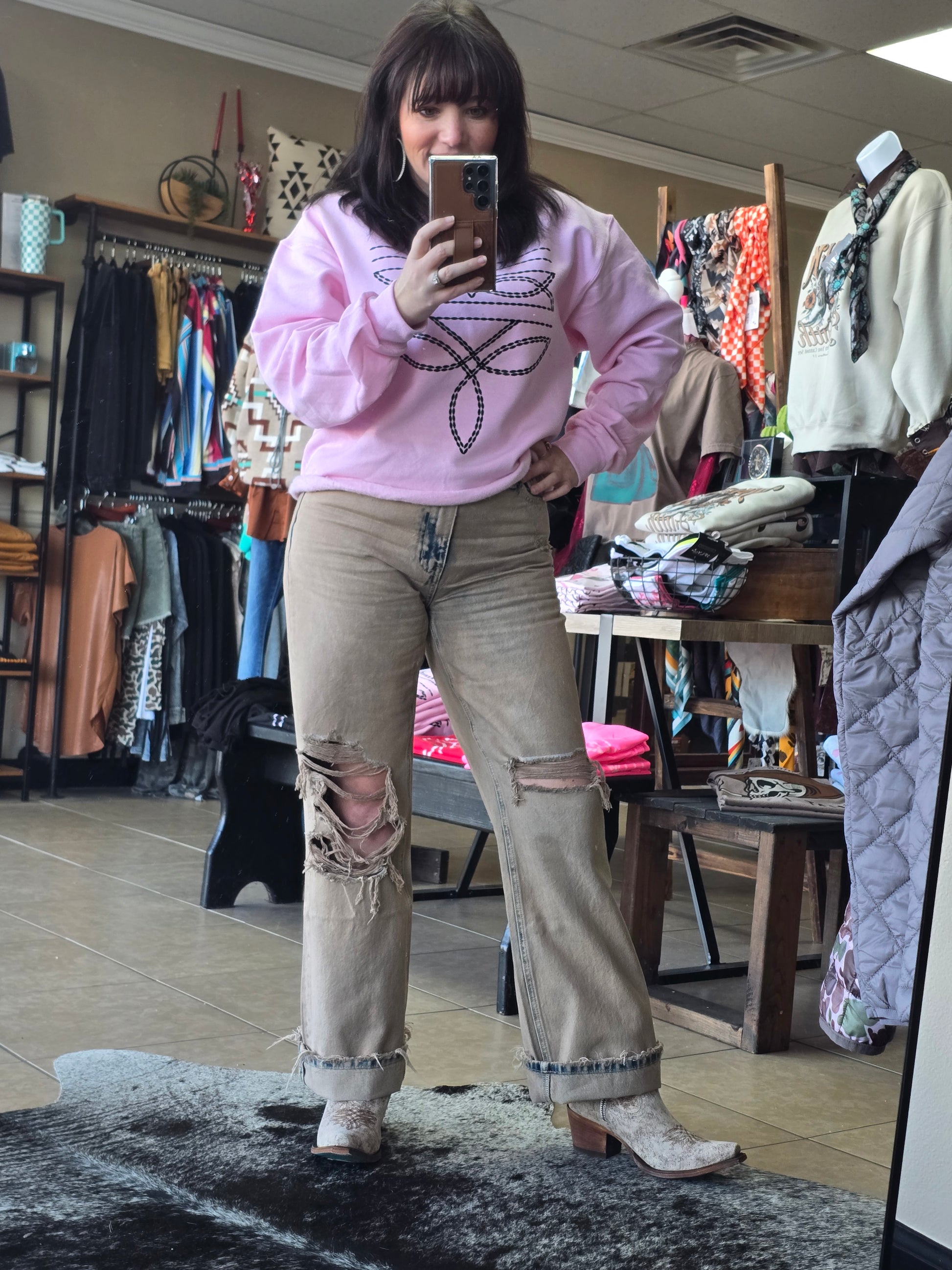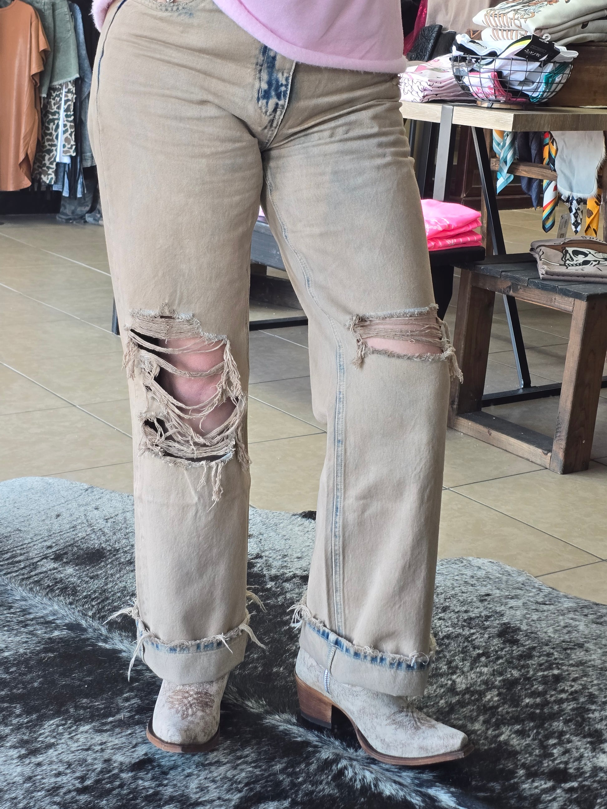 Bleach washed look with distressed details