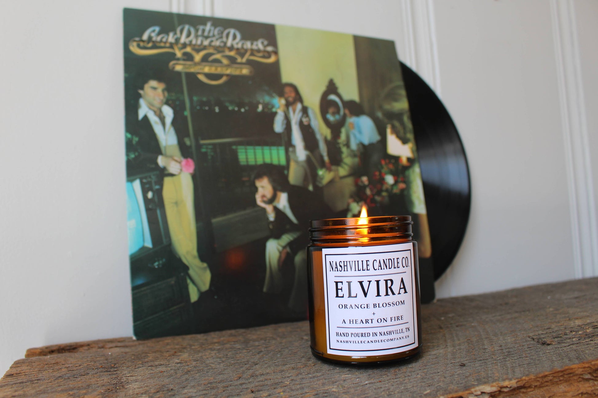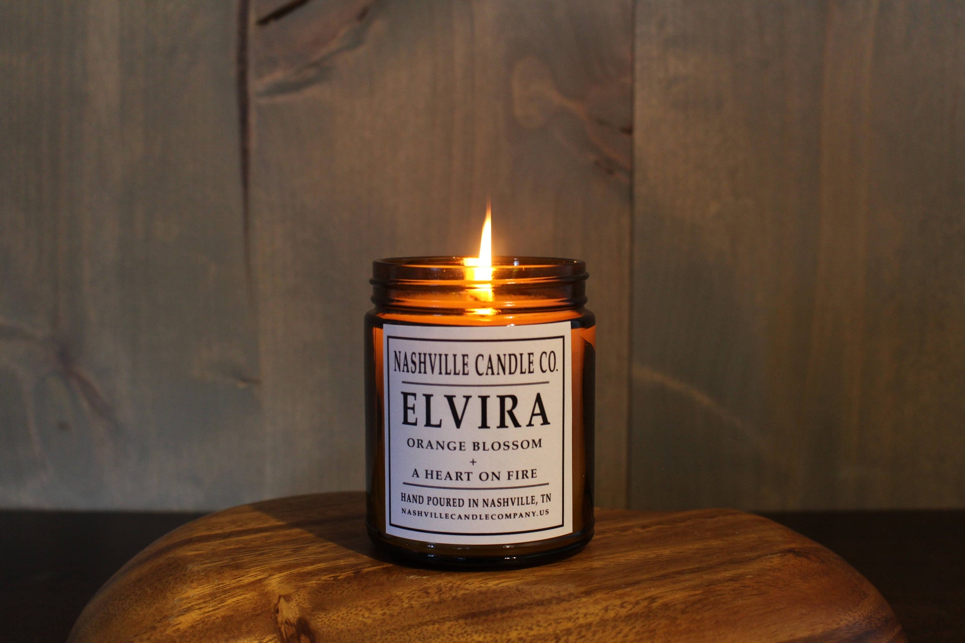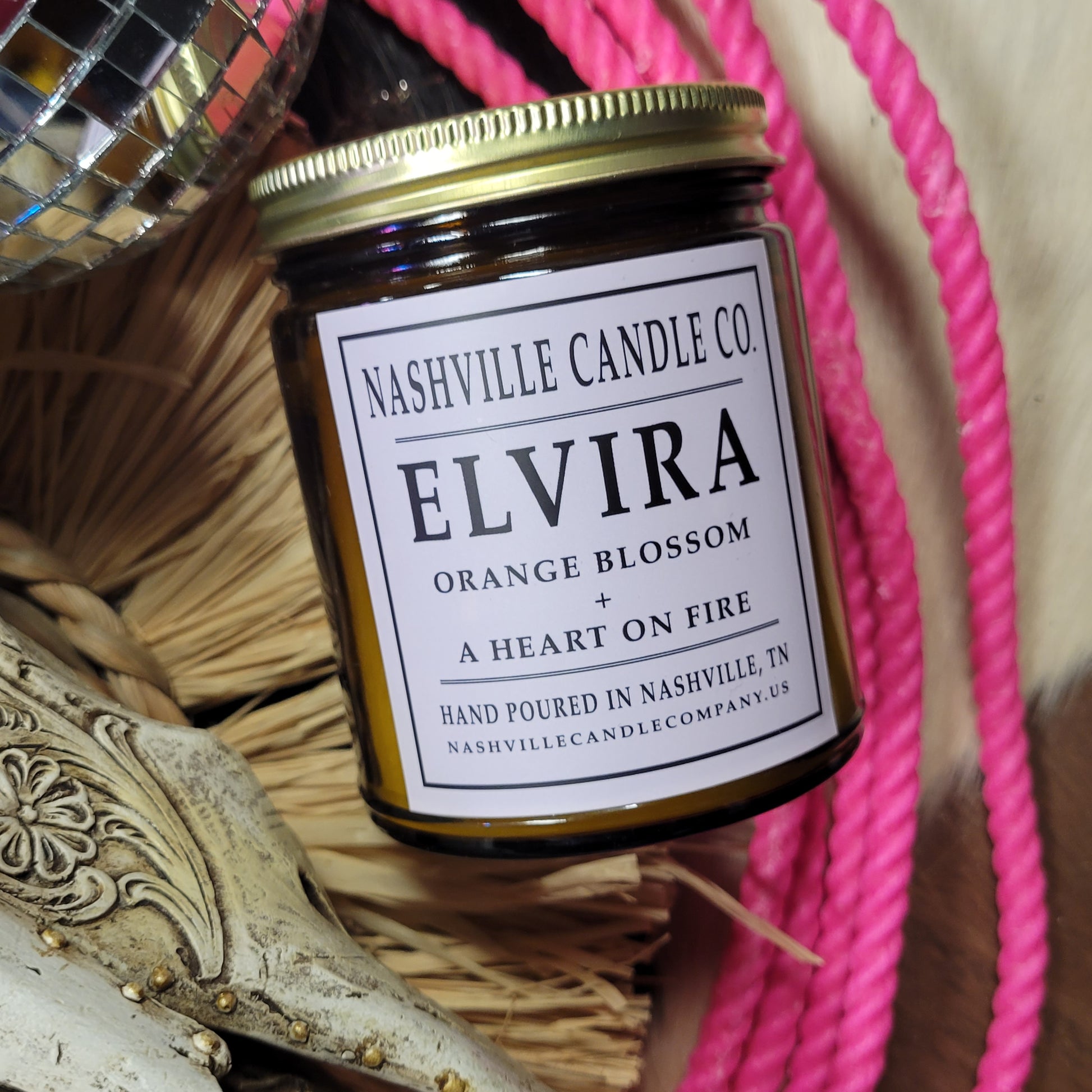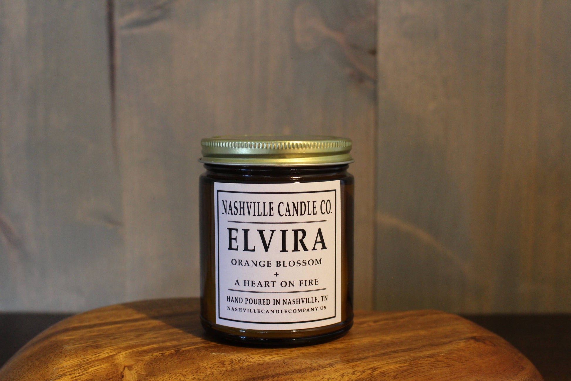 Inspired by The Oak Ridge Boy's classic "Elvira," your heart will be on fire with notes of orange blossom, bergamot, petigrain, neroli and jasmine, with a light sandalwood base. This scent is sweet, delicate, and fresh. Every candle is hand-poured, using high quality ingredients, in small batches in Nashville, TN. Nashville Candle Company is woman owned and operated.