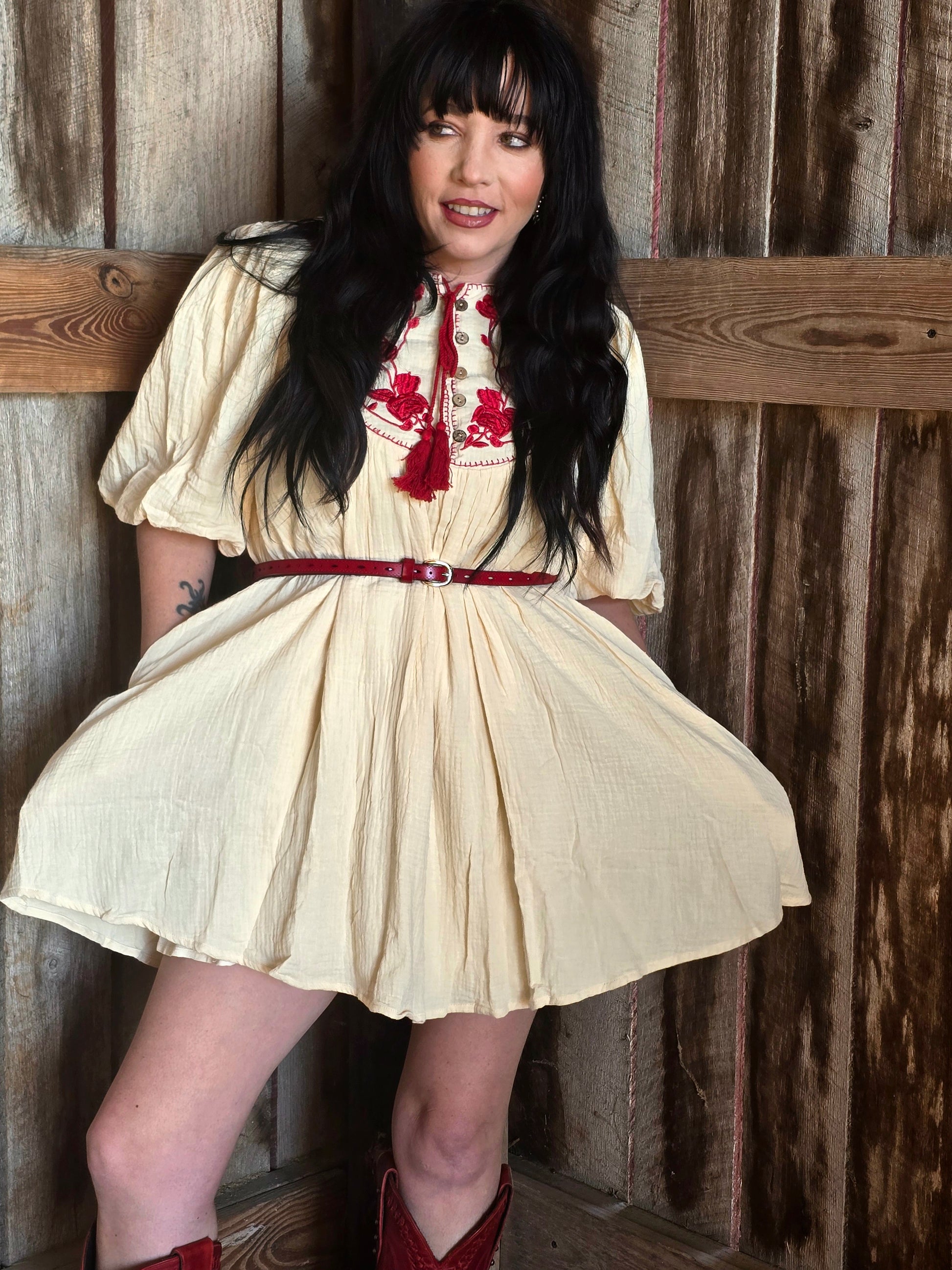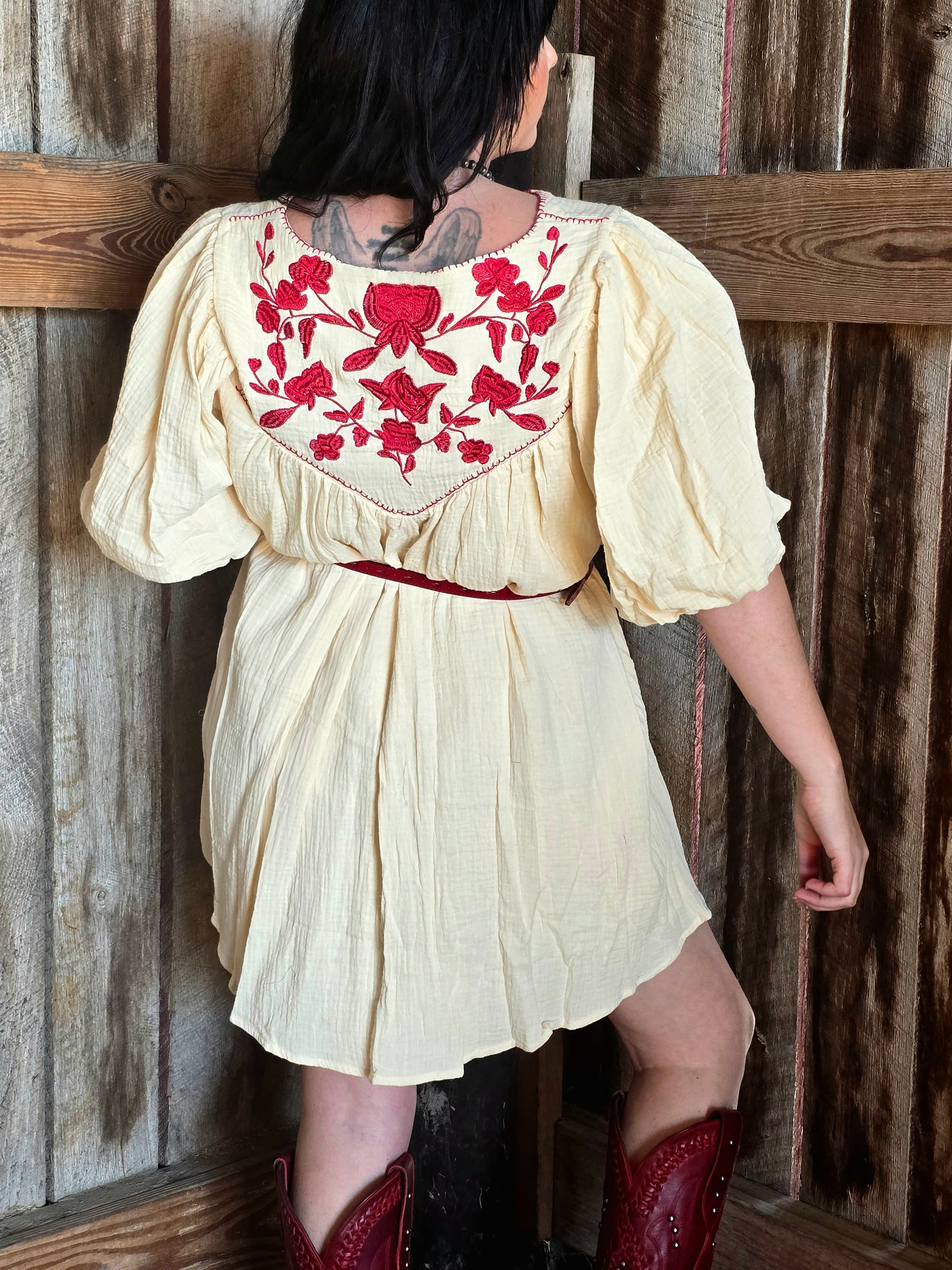 Elevate your date night style with our charming Bali Tunic Dress. This effortlessly chic tunic dress features pockets and red embroidered details, adding both functionality and flair to your look. Perfect for a night out, this dress is a must-have for any fashion-forward individual.