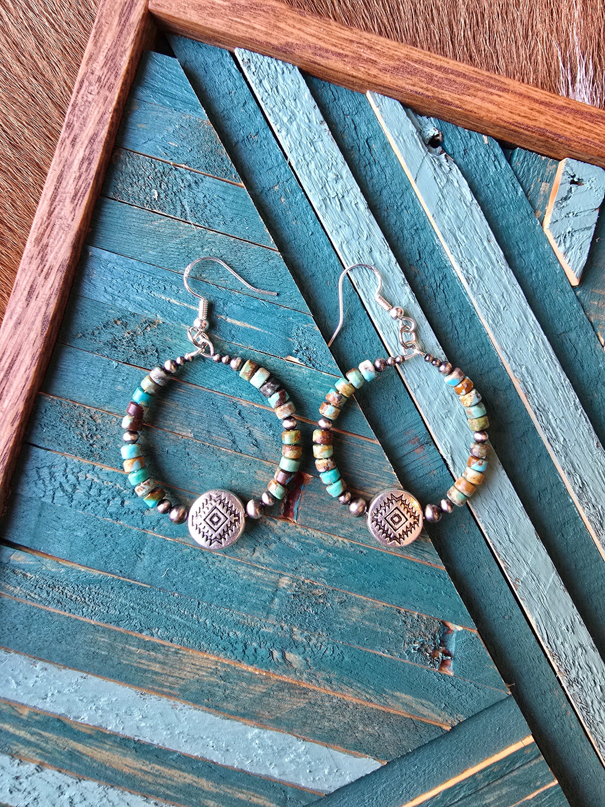Elevate your style with the High Desert Halo Hoop Earrings. Featuring a stunning combination of turquoise and sterling silver pearls, these earrings offer a vibrant pop of color, perfect for any outfit. Their lightweight design ensures all-day comfort, making them a lovely accessory for both casual and special occasions.